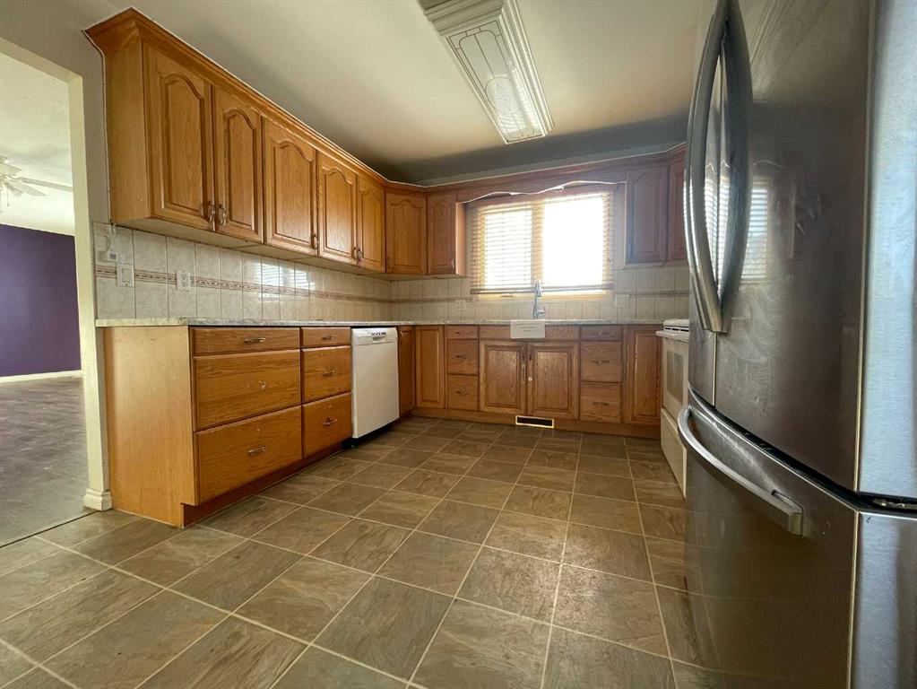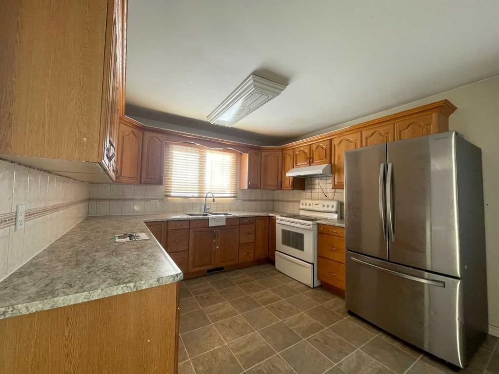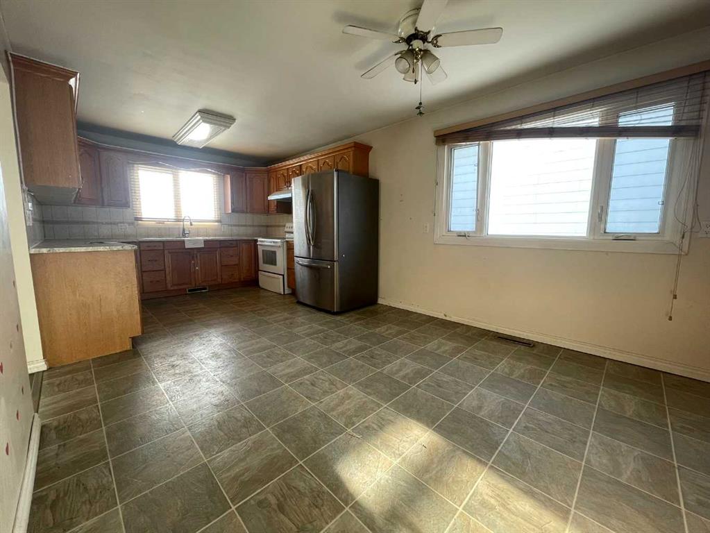 Make your move! Here you find a five bedroom home with nice street presence, in a central location. You will note the newer vinyl siding and windows and the covered 10 x 31 rear deck for easy BBQing or enjoying the outdoors yet out of the elements. The yard is sizable, with rear alley access plus front driveway, a storage shed and a 24 x 26 detached garage. The main floor has a spacious living room, updated and bright oak kitchen with plenty of counter space and built in china cabinetry storage. This is a no carpet home! Build in your own equity with your improvements to the basement. There is a large family room, three piece bath, two bedrooms, plenty of storage space available plus a dedicated laundry/utility room. Put this one on your must see list and contact your local Realtor® today!