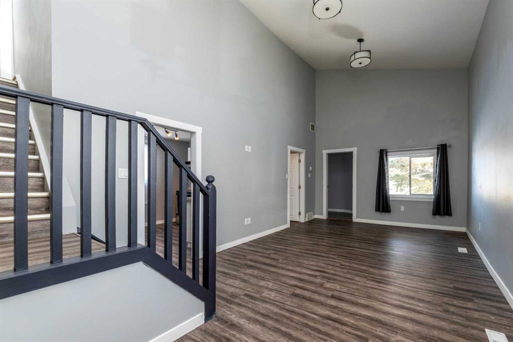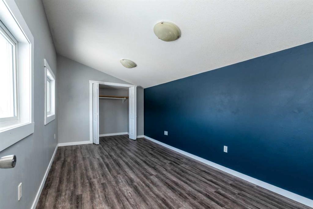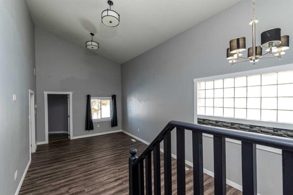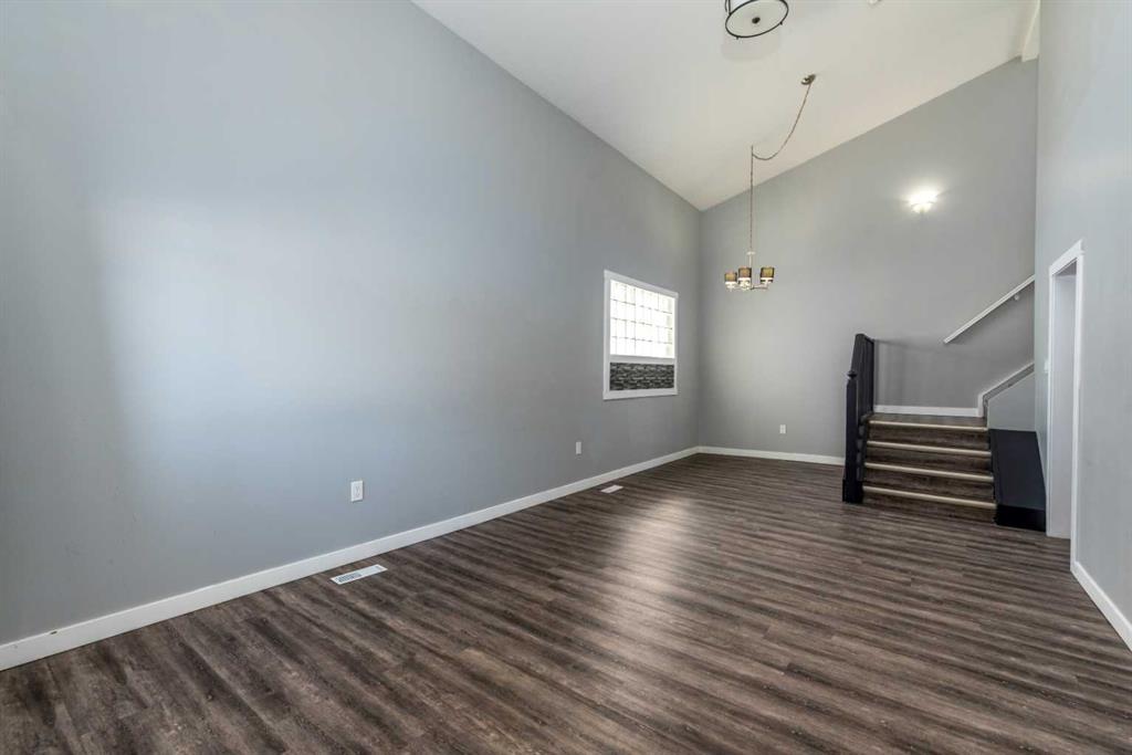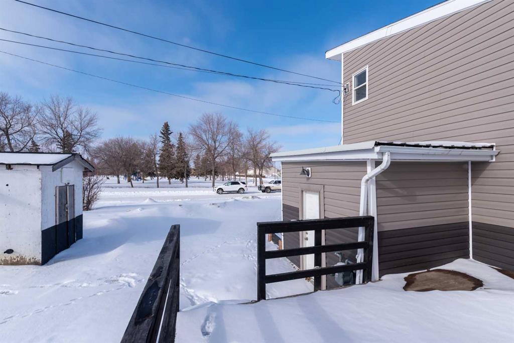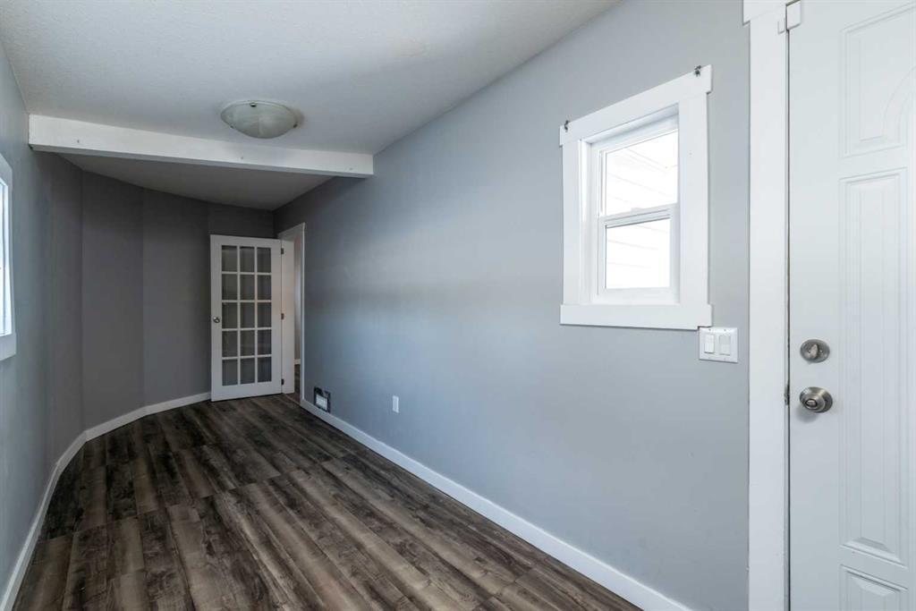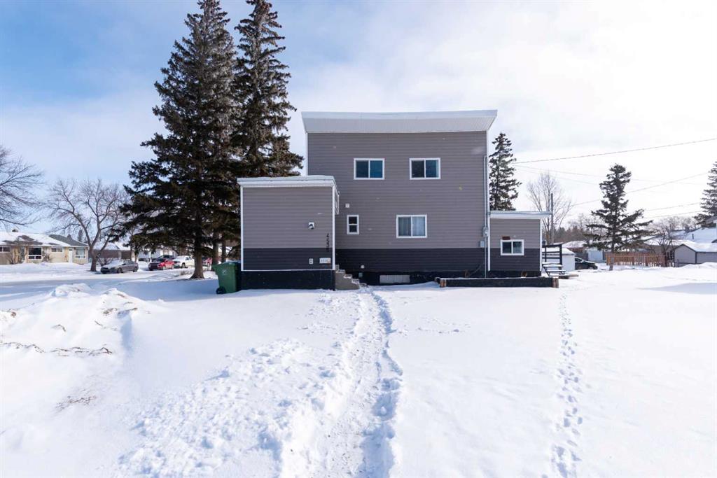 Make your move! This charming character home has been professionally renovated inside and out since 2019. Including internal weeping tile and sump, vinyl siding, roof and shingles, windows, exterior doors, hot water tank, waterproof laminate flooring, interior doors and trim, kitchen and bathroom renovations, electrical throughout the home with a new panel and light fixtures. This is a unique property located on a double, corner lot (69x122 feet) with a rear alley and included storage shed – there is a TON of potential and space here for your future garage or quiet and private, dream yard with direct neighbours limited to one! Across the street to the west is lovey Miner Park and the location is quiet but central enough to be in close proximity to all services and amenities. Inside you are welcomed to a supersized foyer or boot room with endless potential to be set up for your storage needs. Upon entering the open concept, living and dining space of the home you find dramatic 14 foot vaulted ceilings adding a sense of grandeur with bright natural light from a glass block feature window. The renovated kitchen is tucked away and private from the dining area with included appliances and a view overlooking the yard and park. A spacious four piece bath with room for extra storage completes this level. The second level staircase combines functionality with an aesthetic focal point and upstairs there is the primary bedroom with plenty of storage and also that west view of the park from the second level. On your way downstairs to the basement you find the back door access with a rear foyer (electrified on a sensor but not heated). This entry way could be easily separated for extended family or a roommate to have a bit of extra privacy. The basement is currently a family room, bedroom and laundry/utility area but there are egress windows in the basement and there would be room for a third bedroom if a buyer requires this. There are also new ceiling tiles in the basement, there is a sump pump and the furnace is older but was rebuilt in the late 90s and has had no issues. Immediate possession is available, schedule a viewing today and see how well this property could work as your new home!