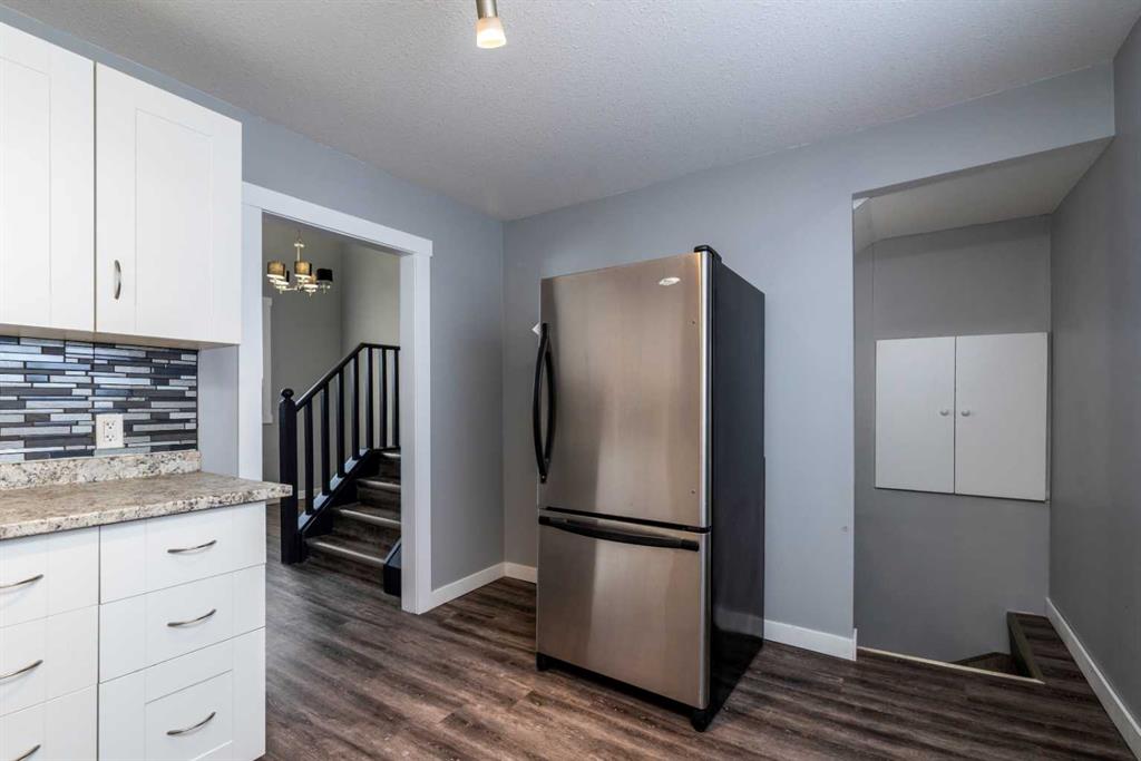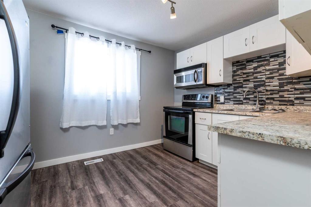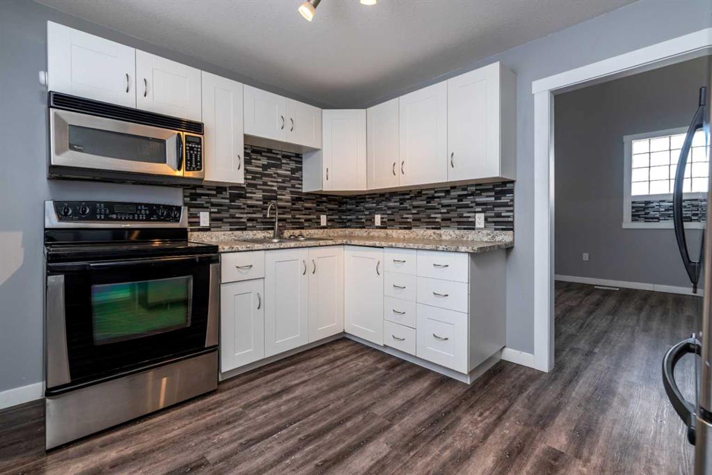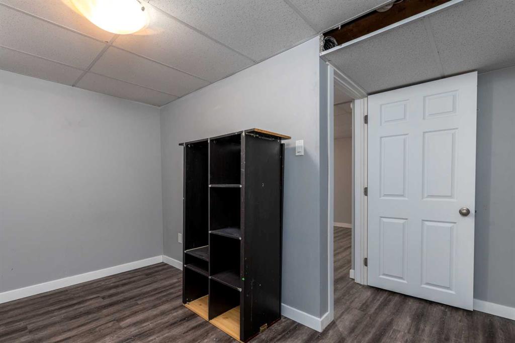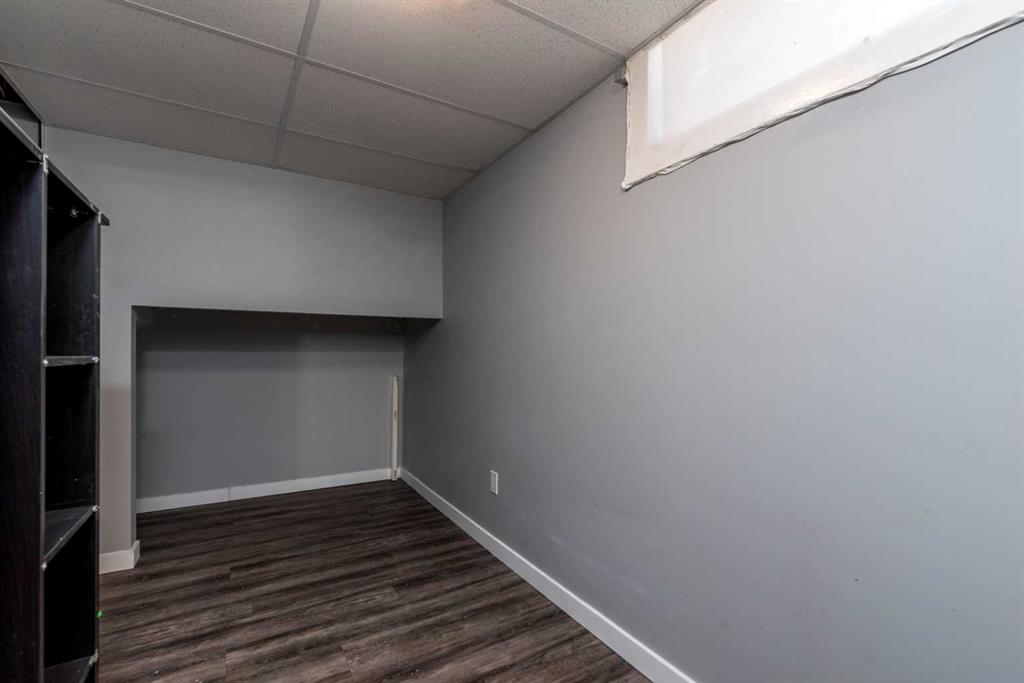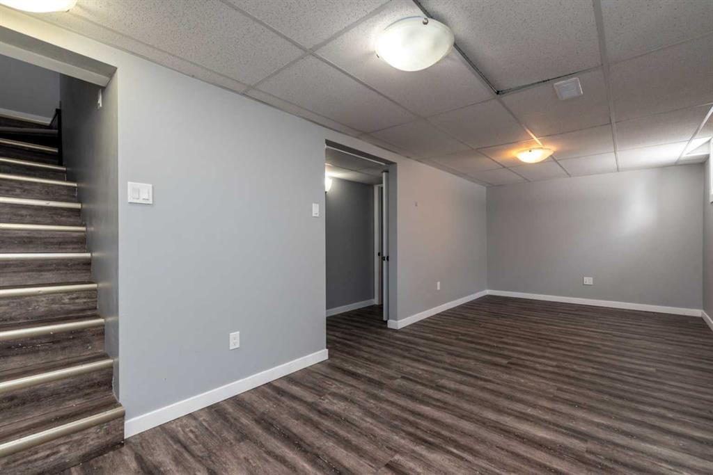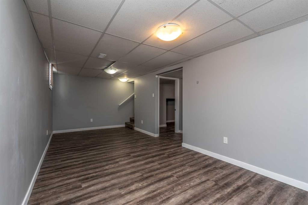 Make your move! This charming character home has been professionally renovated inside and out since 2019. Including internal weeping tile and sump, vinyl siding, roof and shingles, windows, exterior doors, hot water tank, waterproof laminate flooring, interior doors and trim, kitchen and bathroom renovations, electrical throughout the home with a new panel and light fixtures. This is a unique property located on a double, corner lot (69x122 feet) with a rear alley and included storage shed – there is a TON of potential and space here for your future garage or quiet and private, dream yard with direct neighbours limited to one! Across the street to the west is lovey Miner Park and the location is quiet but central enough to be in close proximity to all services and amenities. Inside you are welcomed to a supersized foyer or boot room with endless potential to be set up for your storage needs. Upon entering the open concept, living and dining space of the home you find dramatic 14 foot vaulted ceilings adding a sense of grandeur with bright natural light from a glass block feature window. The renovated kitchen is tucked away and private from the dining area with included appliances and a view overlooking the yard and park. A spacious four piece bath with room for extra storage completes this level. The second level staircase combines functionality with an aesthetic focal point and upstairs there is the primary bedroom with plenty of storage and also that west view of the park from the second level. On your way downstairs to the basement you find the back door access with a rear foyer (electrified on a sensor but not heated). This entry way could be easily separated for extended family or a roommate to have a bit of extra privacy. The basement is currently a family room, bedroom and laundry/utility area but there are egress windows in the basement and there would be room for a third bedroom if a buyer requires this. There are also new ceiling tiles in the basement, there is a sump pump and the furnace is older but was rebuilt in the late 90s and has had no issues. Immediate possession is available, schedule a viewing today and see how well this property could work as your new home!